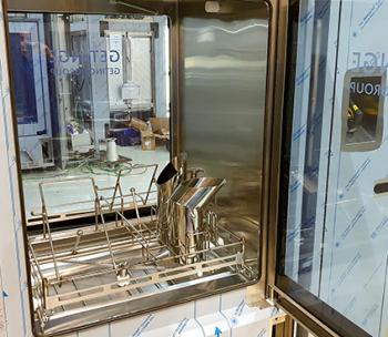 Les verreries et autres composants utilisés pour la fabrication de produits bio-pharmaceutiques sont fréquemment et méticuleusement nettoyés. Leur lavage, qui répond à des normes d’hygiène strictes, doit être effectué selon une méthodologie extrêmement précise. Leur maintien dans les paniers des laveurs est soigneusement étudié ainsi que le nombre et la position des différents disperseurs d’eau nécessaires à leur nettoyage optimal. « Les paniers sont conçus sur mesure selon la typologie des pièces à laver. Le mécanisme de maintien des pièces et le système d’irrigation composé de buses et d’injecteurs répondent spécifiquement aux exigences cGMP [Current Good Manufacturing Practice, NdlR] de l'industrie bio-pharmaceutique et de l’application du client », explique Cédric Tremolieres, superviseur CAO du bureau d’études de Getinge Lancer qui propose une large gamme de laveurs/sécheurs dotés d’une cuve dont le volume s’étend de 80 cm³ à près de 5 m³.